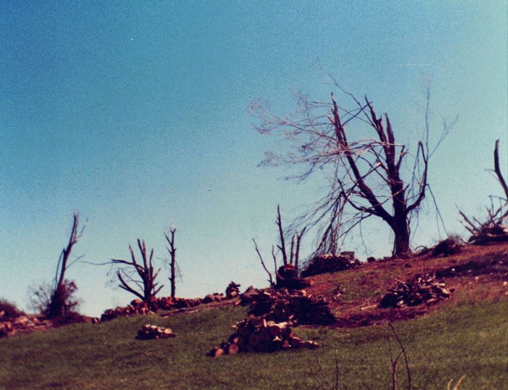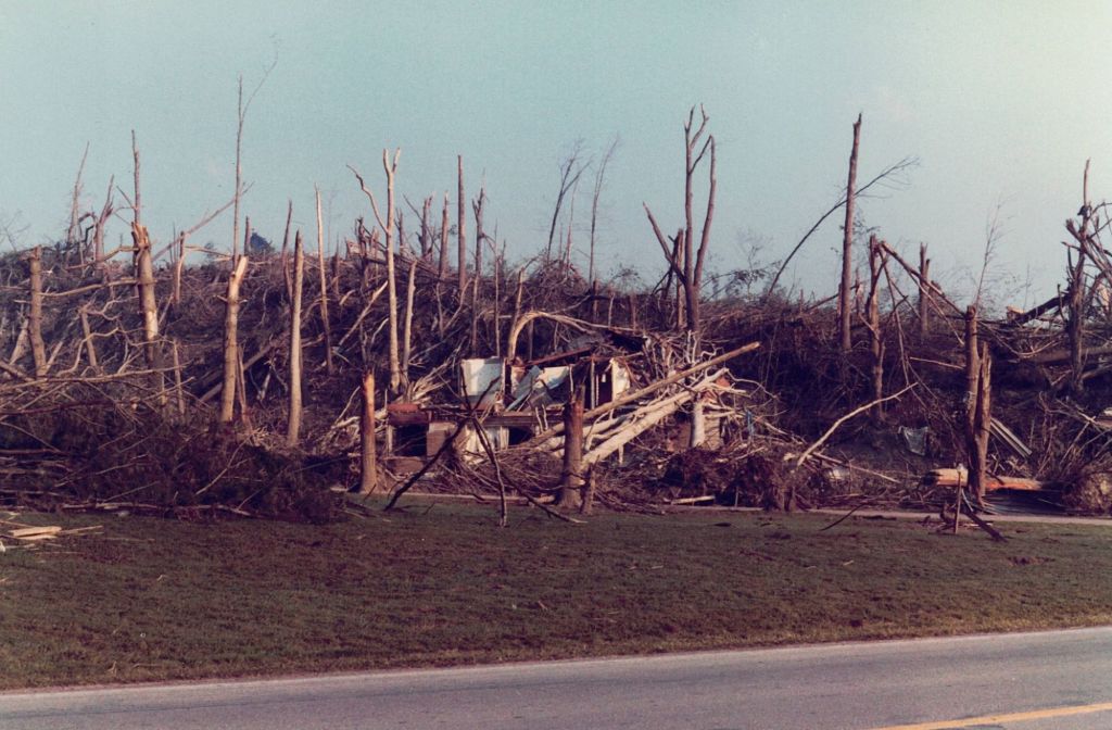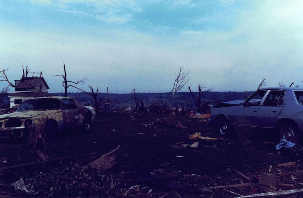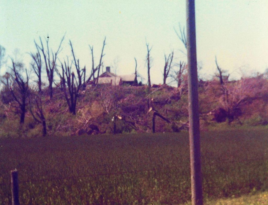 As the thunder and rain began, the sky looked an ominous grey-green like I had never seen before and havent seen since. We saw what seemed like a wall of dark clouds extending from the sky to the ground in the distance over Atlantic. From our vantage point, we had no idea an F-4 tornado was devastating the sleepy hamlet and killing five people on a 56-mile path of devastation that would ultimately claim a total of 23 souls.